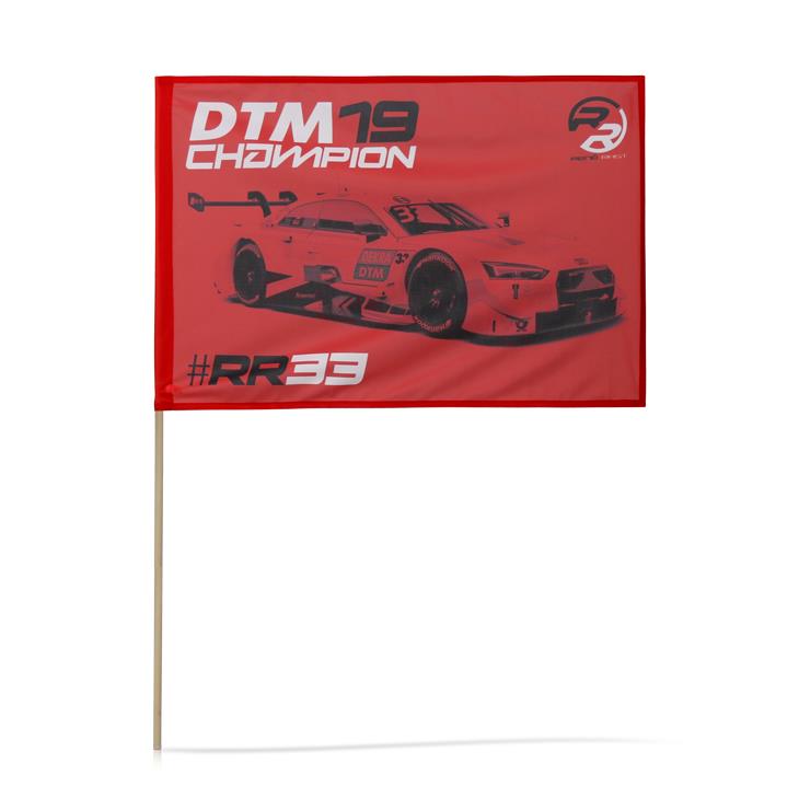 Mit dieser 75 x 50 cm großen Fahne im René Rast Champion Design zeigst du der ganzen Welt, dass dein DTM Herz für die Nummer 33 schlägt. Schwing diese Fahne auch in der nächsten Saison auf der Tribüne, um dich und René auf weitere rasante Siege einzustimmen.